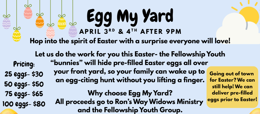 *Please make checks payable to "The Fellowship at Western Oaks" and put "Egg My Yard" in the memo.